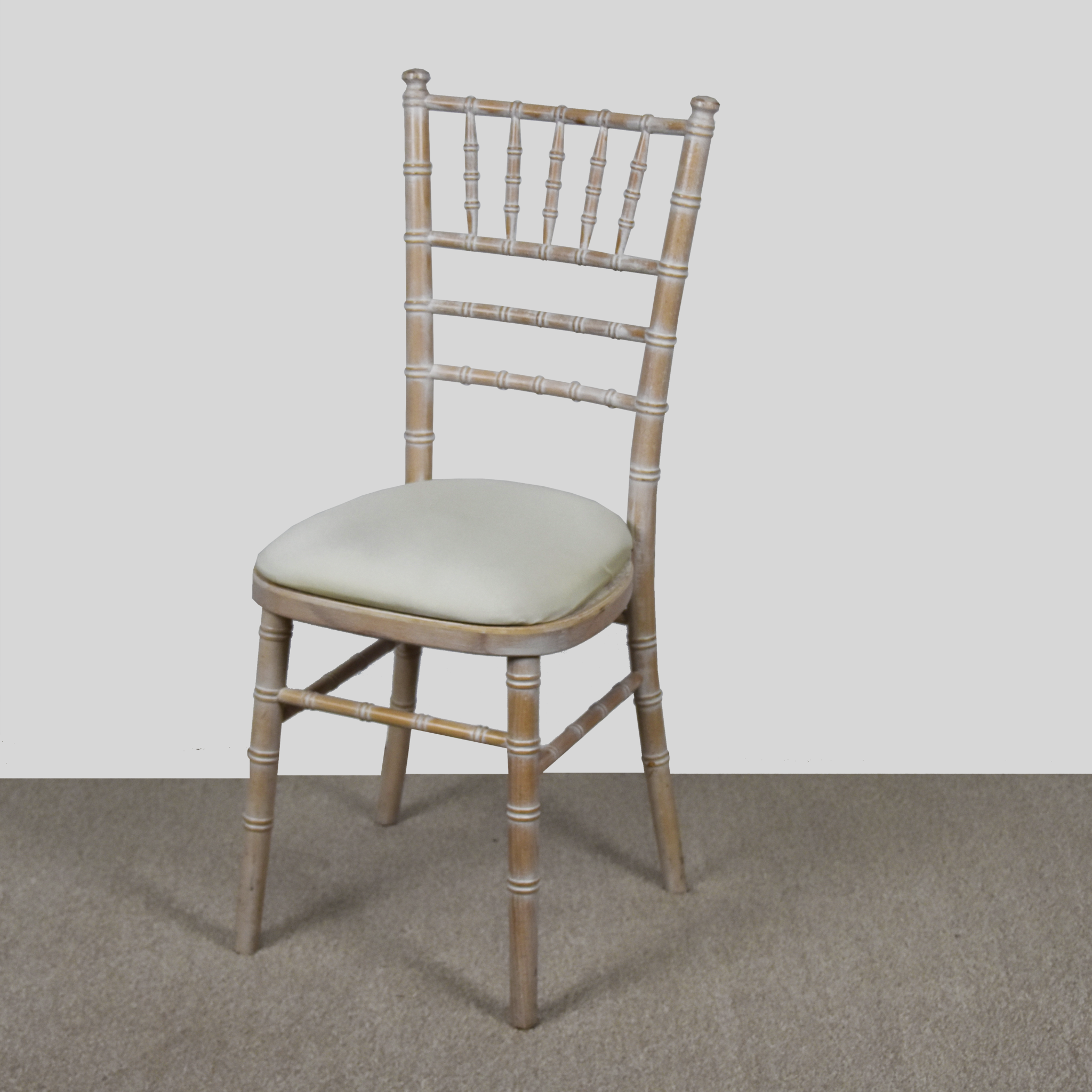 Limewash Chiavari chairs add a soft, sophisticated charm with their muted, neutral finish—perfect for elegant, timeless settings like weddings, galas, and upscale events.